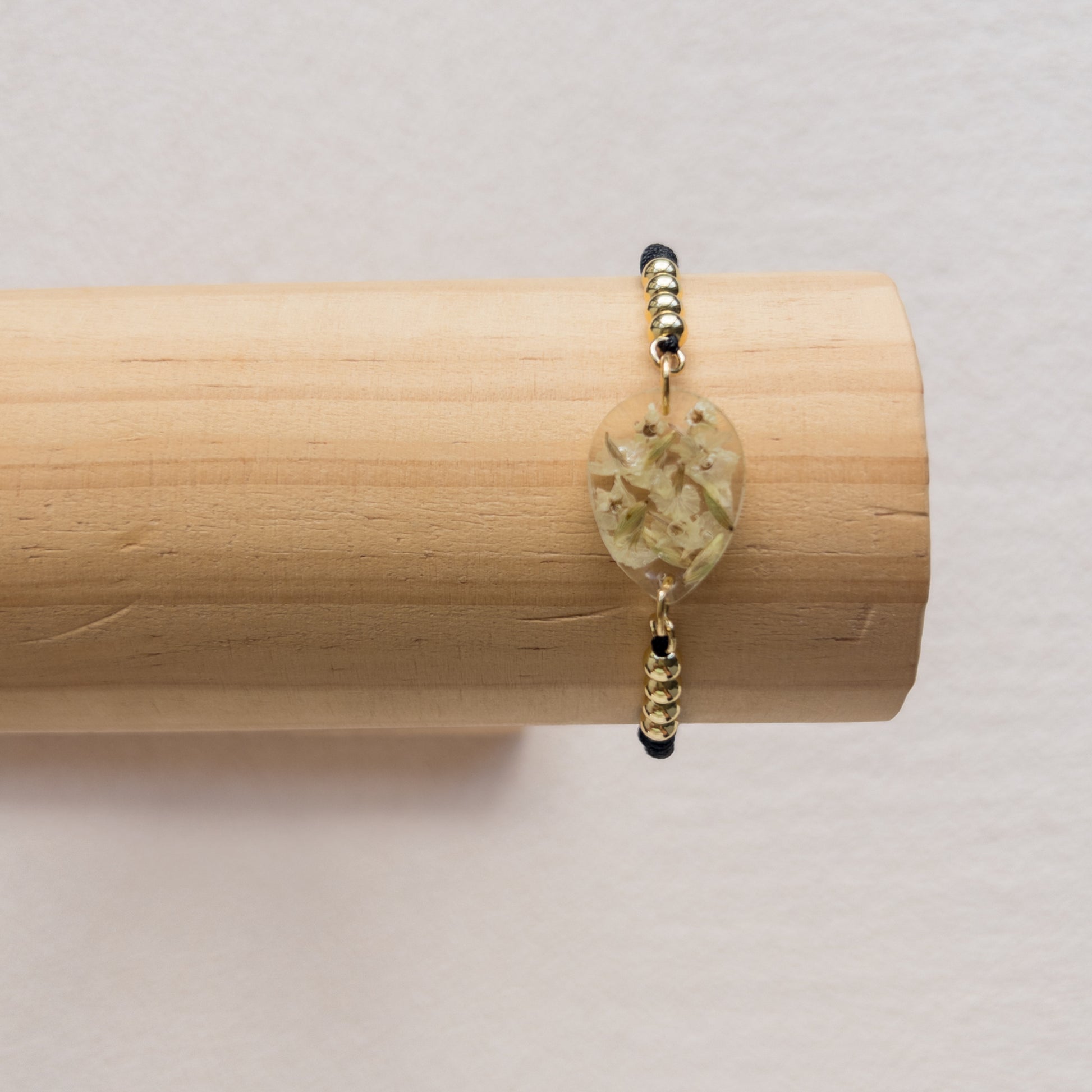 Pulsera con Chorrito de Luz encapsulados en resina y herrajes acero inoxidable.